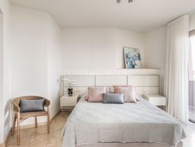 De ruime woonkamer, badend in natuurlijk licht, biedt een panoramisch 360 graden zicht op de oceaan. Dankzij de grote raampartijen vloeit de binnenruimte moeiteloos over in het terras, waardoor één indrukwekkende leefruimte ontstaat. De hoofdslaapkamer, eveneens met en-suite badkamer, onderscheidt zich door het spectaculaire zeezicht. Alle slaapkamers zijn bovendien uitgerust met ruime inbouwkasten voor extra comfort en opbergruimte.